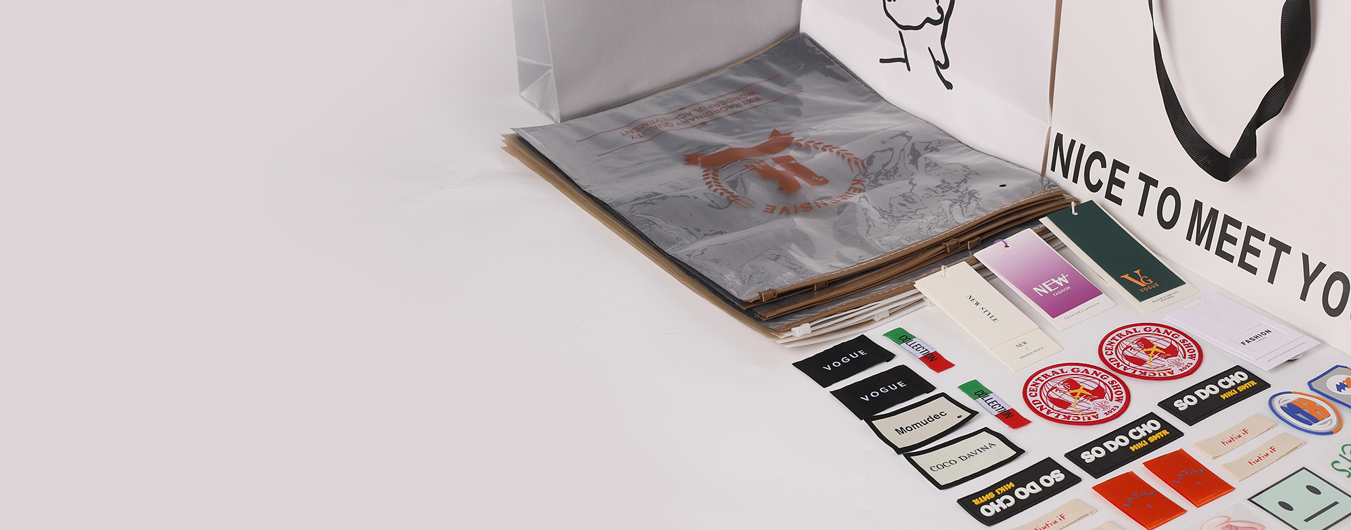 We are a professional garments labels manufacturer, specialize in this field more than 10 years and have our own factory. Mainly product garment labels, hangtags, embroidery patch ,Silicone patch, leather labels, stickers, shopping bags and so on.